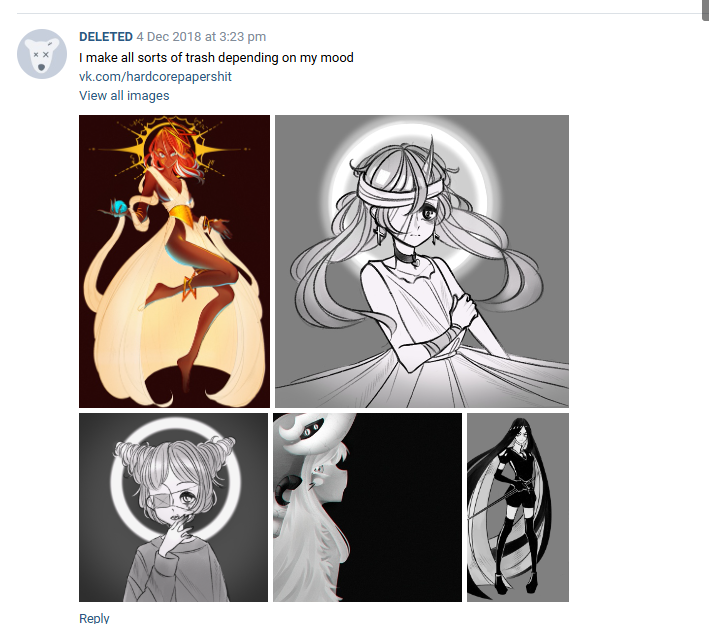 She deleted hardcorepapershit in 2019 when she left VK. Before that she used to collaborate with @pussycatadoptshop and shill her art