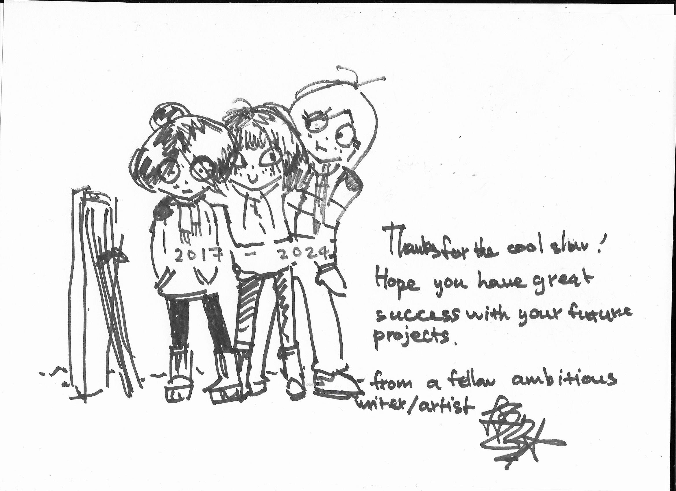 >Maybe this attempt at drawing reminds you of something. At least, that was my intention. I can still remember the very first drawing you ever made for my birthday, and now that there is a definitive end to Unsociable, it feels like the circle is coming full circle.