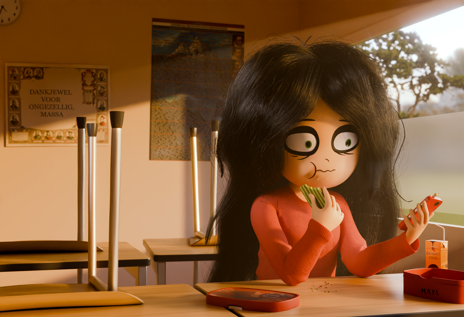 >24:44 Mymy’s sister episode is the most fleshed out. Mymy’s sister tracks her down and has this big elaborate scheme where she infiltrates the school pretending to be a korean boy that causes Maya to fall for her since K-Pop boys are hot or something. She immediately befriends Maya (she knows everything about the Schoppenboer family because she’s a genius), she knows Maya’s weak spots. Maya thinks she’s made a friend but Mymy’s sister is just there to get Mymy back to Japan. She asks Maya to stay over for the night, Maya agrees, when she stays over Mymy is none-the-wiser, Coco is VERY skeptical of her presense on befriending Maya, Maya’s mom is just excited to hear Maya finally made a new friend. Coco objects, but Maya’s mom shuts her down and that he can stay (it’s revealed Maya’s mom is the pushy, bitchy type that only likes her kids if they accomplish something). Coco and Mymy keep a lookout on the “boy” that involves a nerfgun shootout between Mymy and her sister like those old cowboy movies. But in the end Mymy’s sister gets found out when they are back at school, Maya chats with her, she goes to the bathroom, Mymy doesn’t buy that her sister is korean so as a test she asks her to sign an autograph of Kim Jon Un since she’s a “big fan”, Mymy’s sister does it in perfect korean handwriting since she studied very hard for it. Later when they’re all back at home Mymy’s sister sneaks into Mymy’s room to kidnap her, pulls the sheets off only to reveal no one’s there, camera cuts to behind her back with Mymy pointing her nerf gun at her. Mymy knew she was a fake since if her sister is “south korean” then she wouldn’t have signed the picture of North Korea’s leader. Mymy’s sister knows this, but she asks how Mymy knows she was her sister. Mymy responds by saying she doesn’t know, this was supposed to be very anticlimactic. Episode maybe ends with Coco beating the shit out of Mymy’s sister and kicks her out, ends sadly as Maya loses what she thought was her only friend. Massa was thinking of hiring an actual Japanese VA to voice Mymy’s sister.