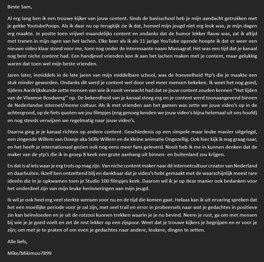 He got burned out. He said that his international fans don't and couldn't contribute to the project due to several problems (sanctions, cheating via foreign credit cards, etc). Only the Dutch are willing to give him money. Even then, he has stated that money is not the main reason he canned it according to a mod on his server.Does anyone else think Sam sabotaged the project? I remember looking at the Dutch patreon and finding out that he was only 300-500 dollars short. If he had a Merch run with posters and shirts I easily think he couldve made the remaining funds.