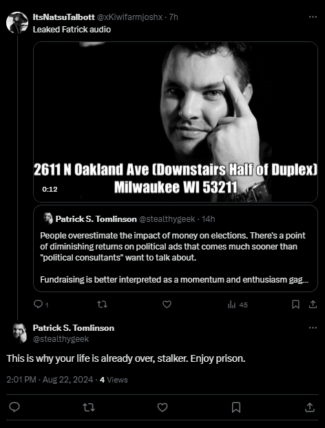 There are well developed codebases for running analysis of a text for seeing who may or may not be the author. The Fatprick has produced a whole lot of text, some edited by others to varying degrees. Running that code VS his output would provide better linkage beyond 'meek isn't used often and Patrick uses meek ergo PAT!' Meek -> Patrick is the kind of leap taken by Jackie with DoucheAtard -> Swedish national,