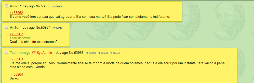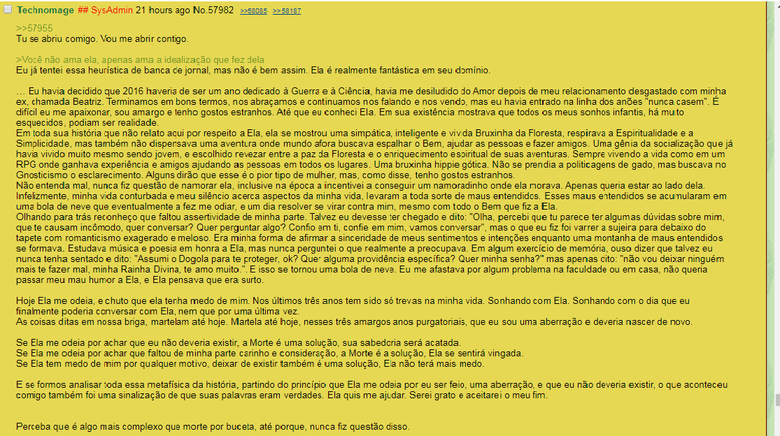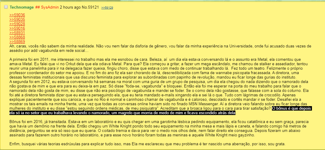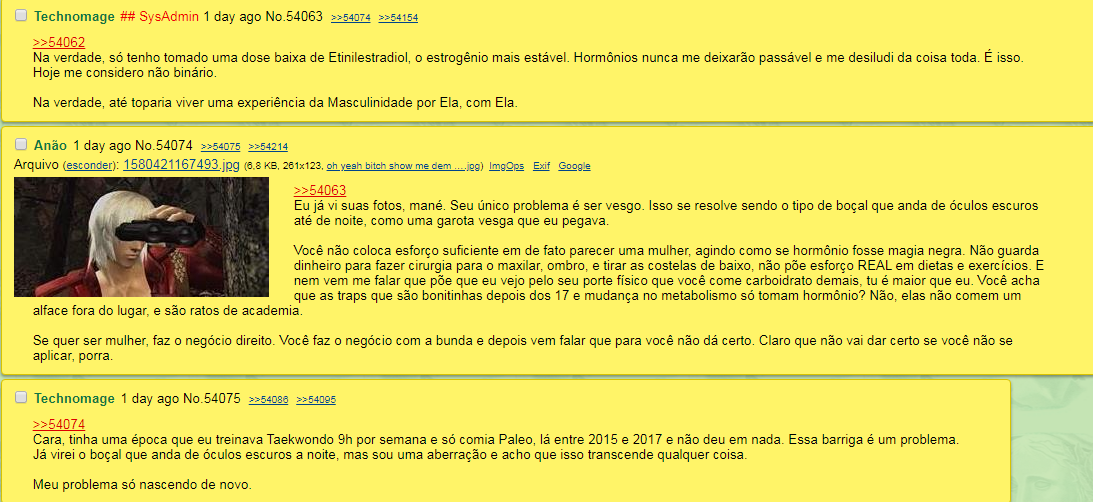 Pouco se tem de informação do Technomage antes do Dogolachan além de comentários velhos e relatos, um comentário mostrando um poucos dos surtos com radfems de Technomage em blogs você confere abaixo: