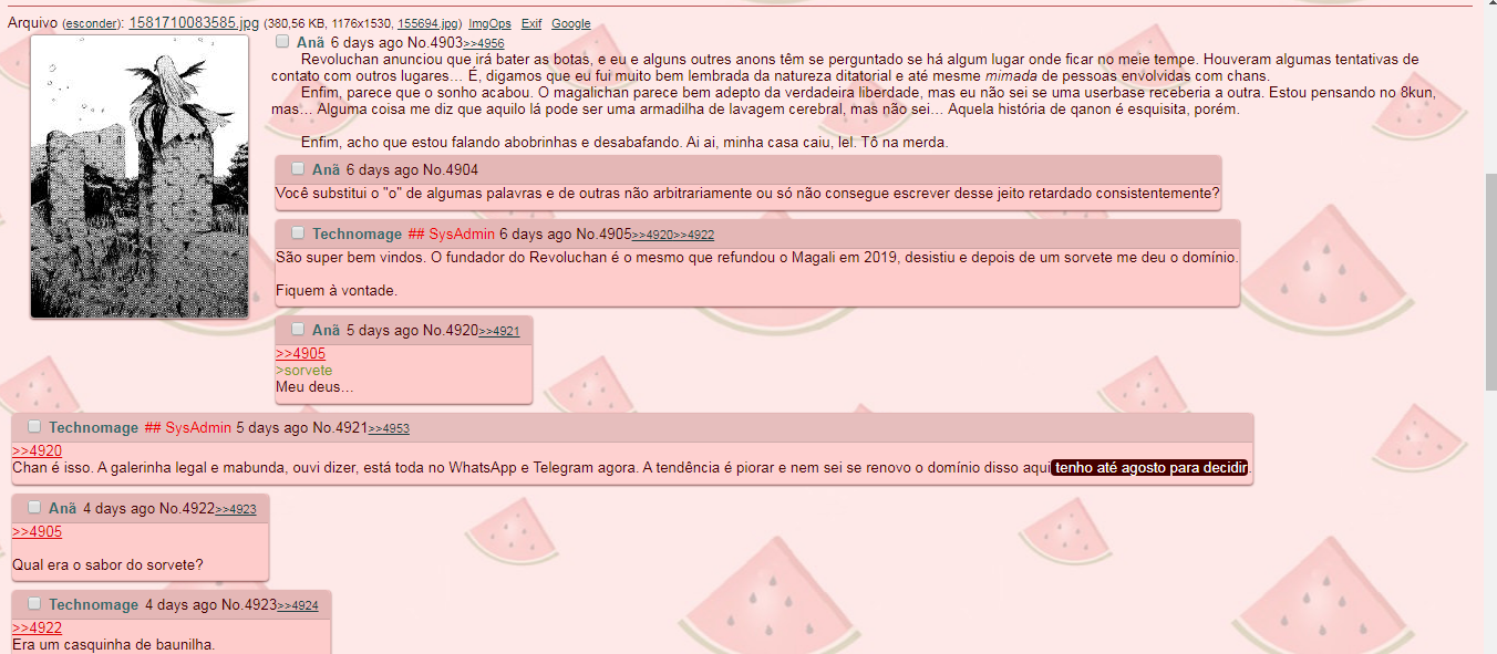 De qualquer forma com o fim do 8chan em 2019, muitas boards brasileiras que estavam por lá foram deletadas, e com isso há um novo "boom" de chans brasileiros que não se via desde a época do orkut, Technomage participou de 2 desses chans, o Realchan (criado por um aspirante baiano) e a terceira encarnação do Magalichan, depois da segunda ter ido pro ralo junto com 8chan.