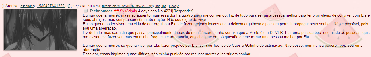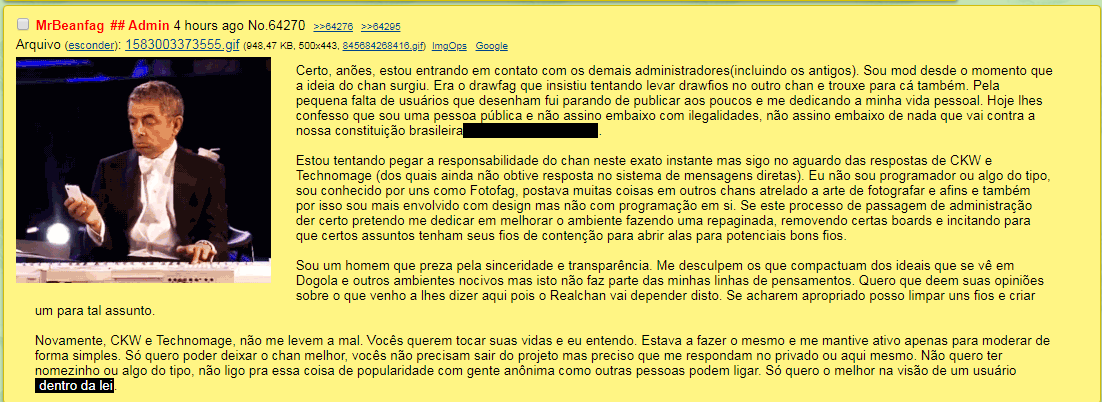 Depois de sua prisão, Technomage relata o caso no Realchan: