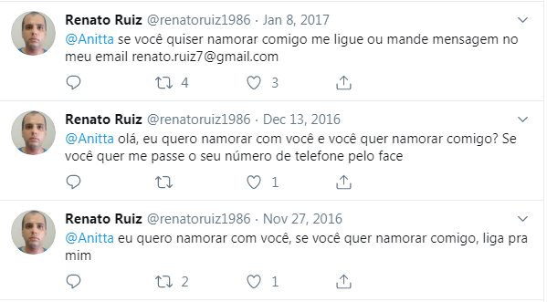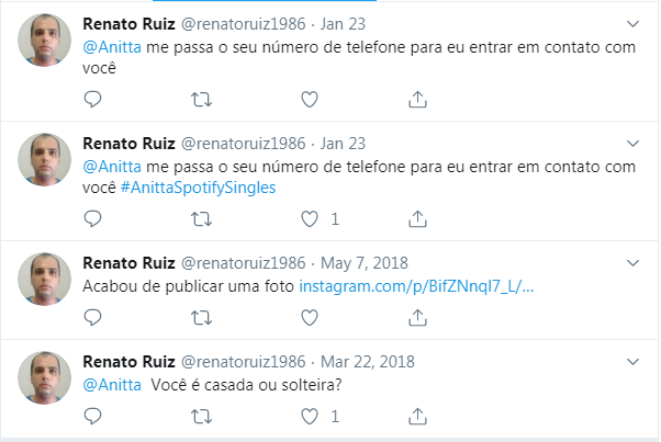 E chegou a mencionar ela no twitter múltiplas vezes: