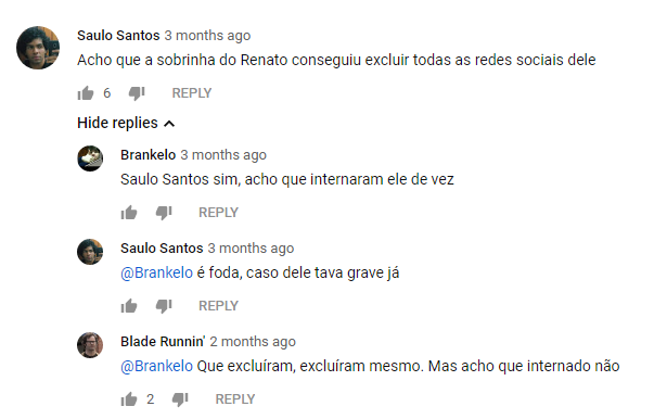 Mas repentinamente Renato teria voltado para internet no começo de Agosto sem nenhuma explicação.