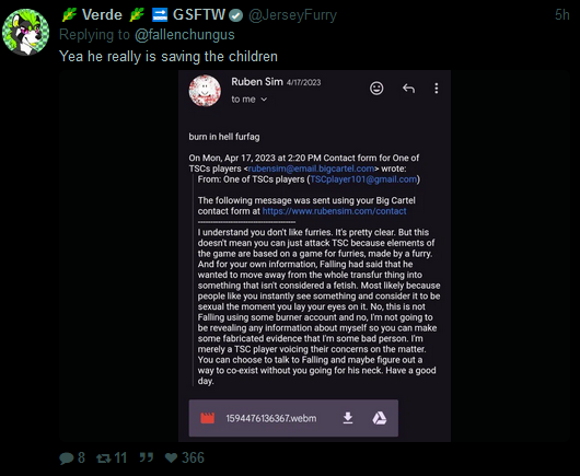Furries should feel bad.because Ruben Sim is compromised by the greater sin of intolerance and seeming drive to make furries all look bad,