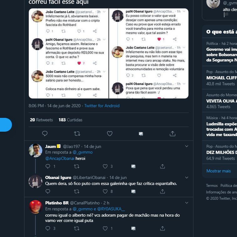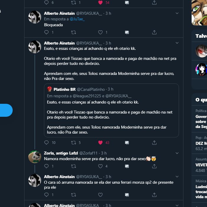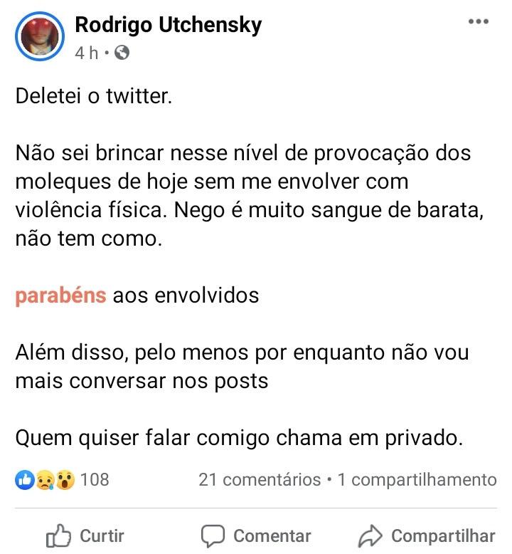 Mais tarde acabou resmungando em outras mídias sociais que o twitter não prestava porque só tinha moleque: