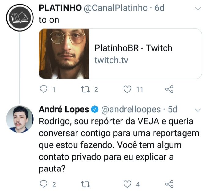 Em Março um jornalista desocupado da Veja tenta entrevistar o Platinho e depois faz um artigo comparando o mesmo e o Newman com o Elliot Rodger: