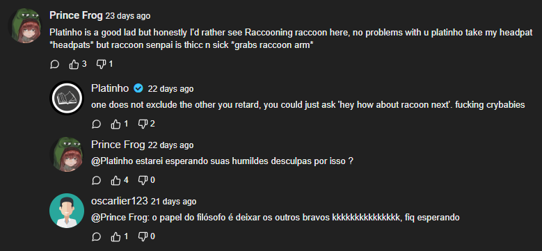 Isso viria mais tarde atormentar ele como um xingamento por causa de uma panelinha no twitter que adora aloprar youtubers MGTOWS.