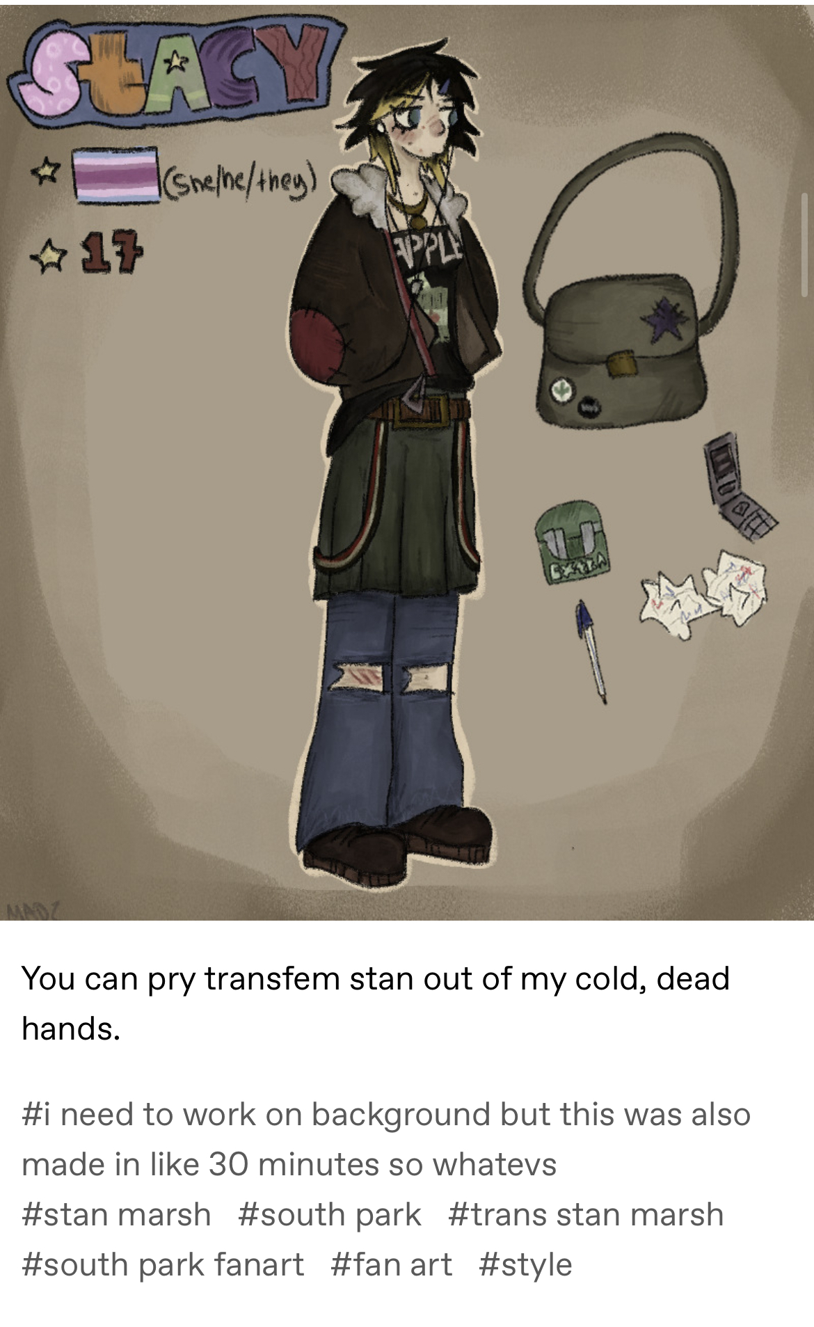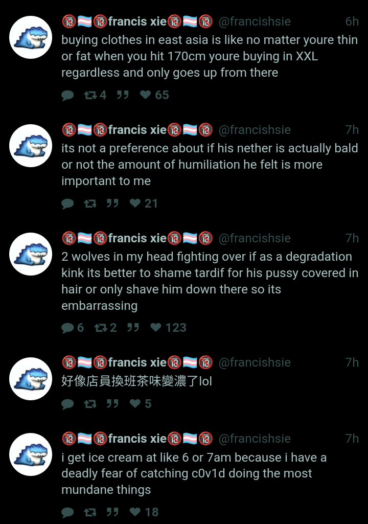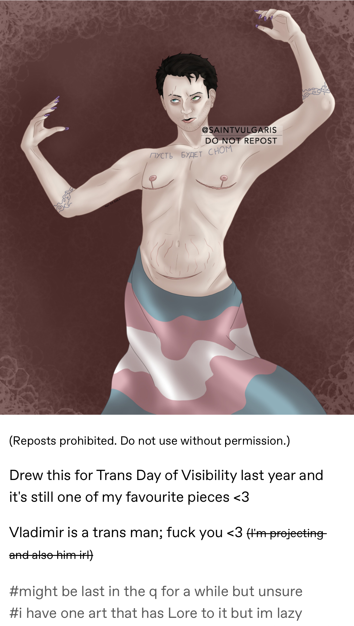 Some tranny man who's also a non-binary (for some reason, hypocritsy is a trademark among these types) with some...interesting kinks and interesting art.