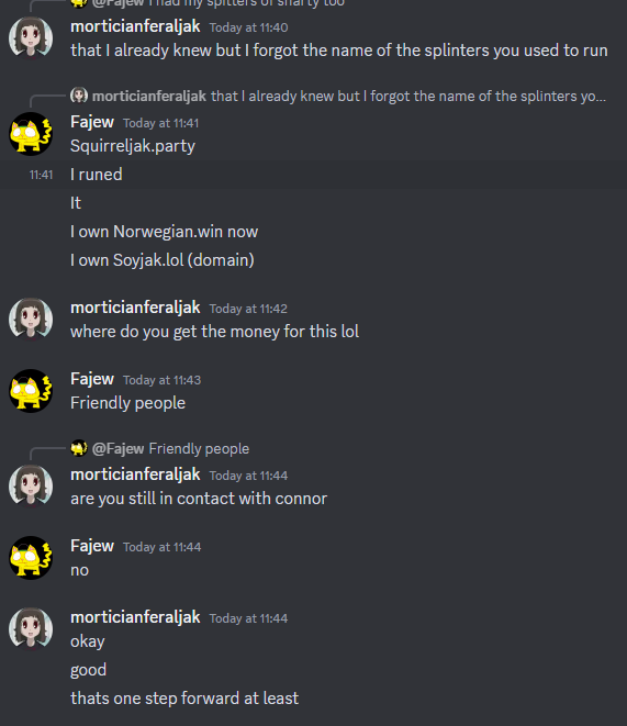 Keep in mind, Doll also openly posted abdl content in the sharty thread too to "troll". Who knows what these fucks were doing in DMs or outside their usual handles that we haven't already seen. Discord, not even once. Not even twice.>most of the texts involve boymoder