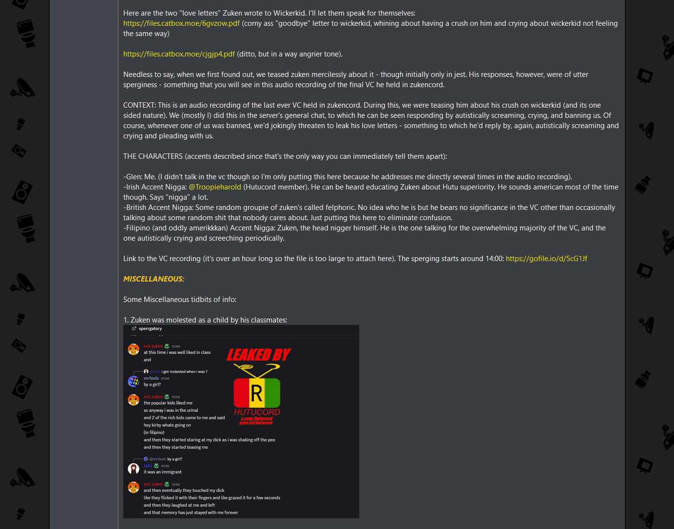 LMAO that little shit was given so many chances to stop doing this shit even after he was revealed to be a pedophilic pinoy shitskin when he was doxxed for incredible gassy shilling and then the NLP shit.Apparently, they are now giving Zunken the cold shoulder for being a faggot in love with wickerkid GEGGGGGGGGGGGGGGGGGG