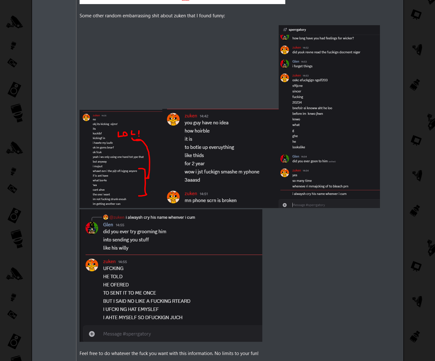 The way drunkards write will never not be funny.Apparently, they are now giving Zunken the cold shoulder for being a faggot in love with wickerkid GEGGGGGGGGGGGGGGGGGG