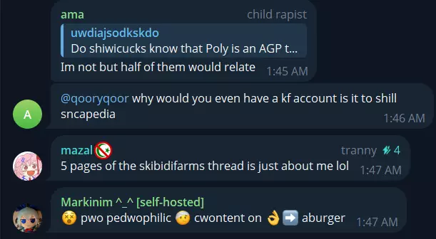 i didn't make any pedophilic jokes actually my messages are all anti pedophiliaEdit: He made those jokes? oh nonononono