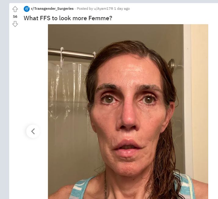 Maybe that's the trick that FFS surgeons should be aiming for: try to create such a weird-looking face that people will assume "very unfortunate genes" rather than "male." (Not that the AGPs would ever allow that, since their fantasies are based on turning into beautiful anime girls).