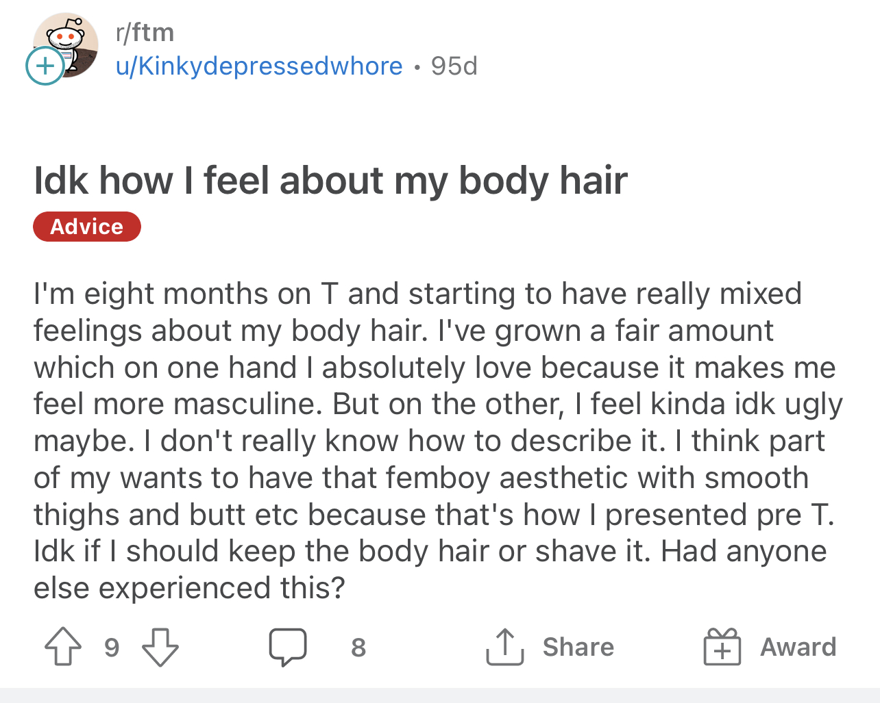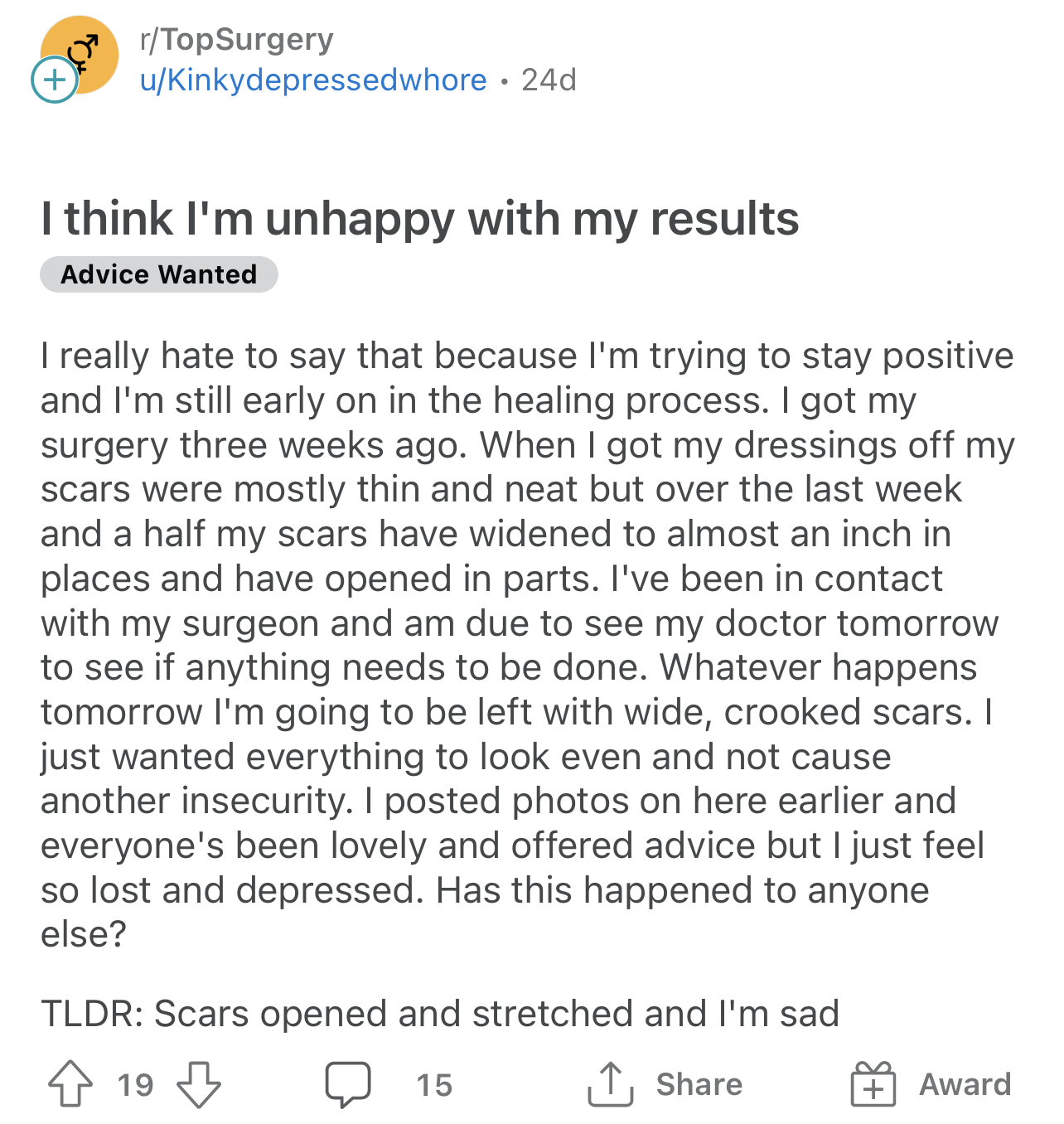 Oh, and when archiving posts from the transgender_surgery sub, be sure to archive the pic (under the i.redd.it domain so it cross links with the archived post), or gallery and the preview image of the gallery after the gallery archives. Right click on the post title to get the image/gallery link and post it into the archiver. Likewise right click on the image area after the gallery finishes archiving to get the preview image and post it into the archiver. The surgery sub hides images by default and so does the corresponding archive. I.e., there's no embedded images in the post, so archive the pic or gallery so we have a record of something in case they ever delete.