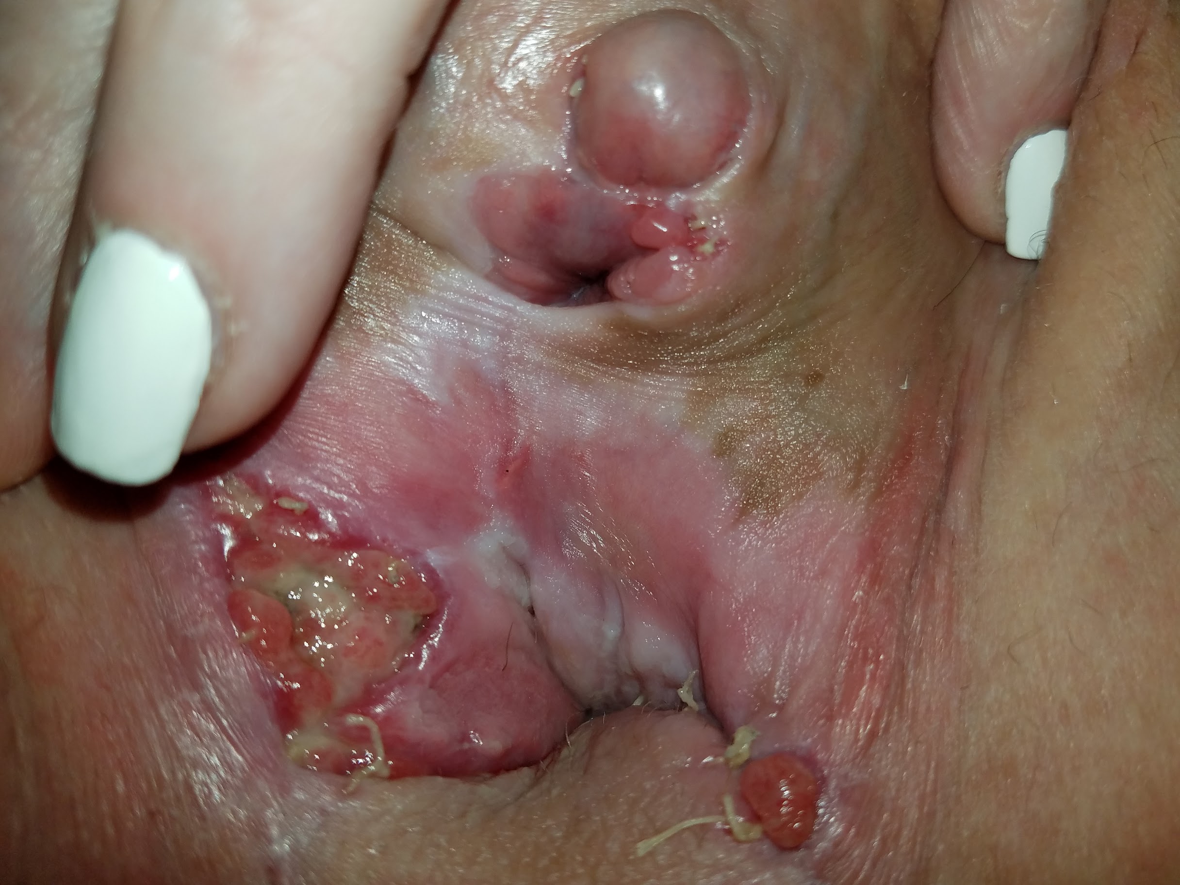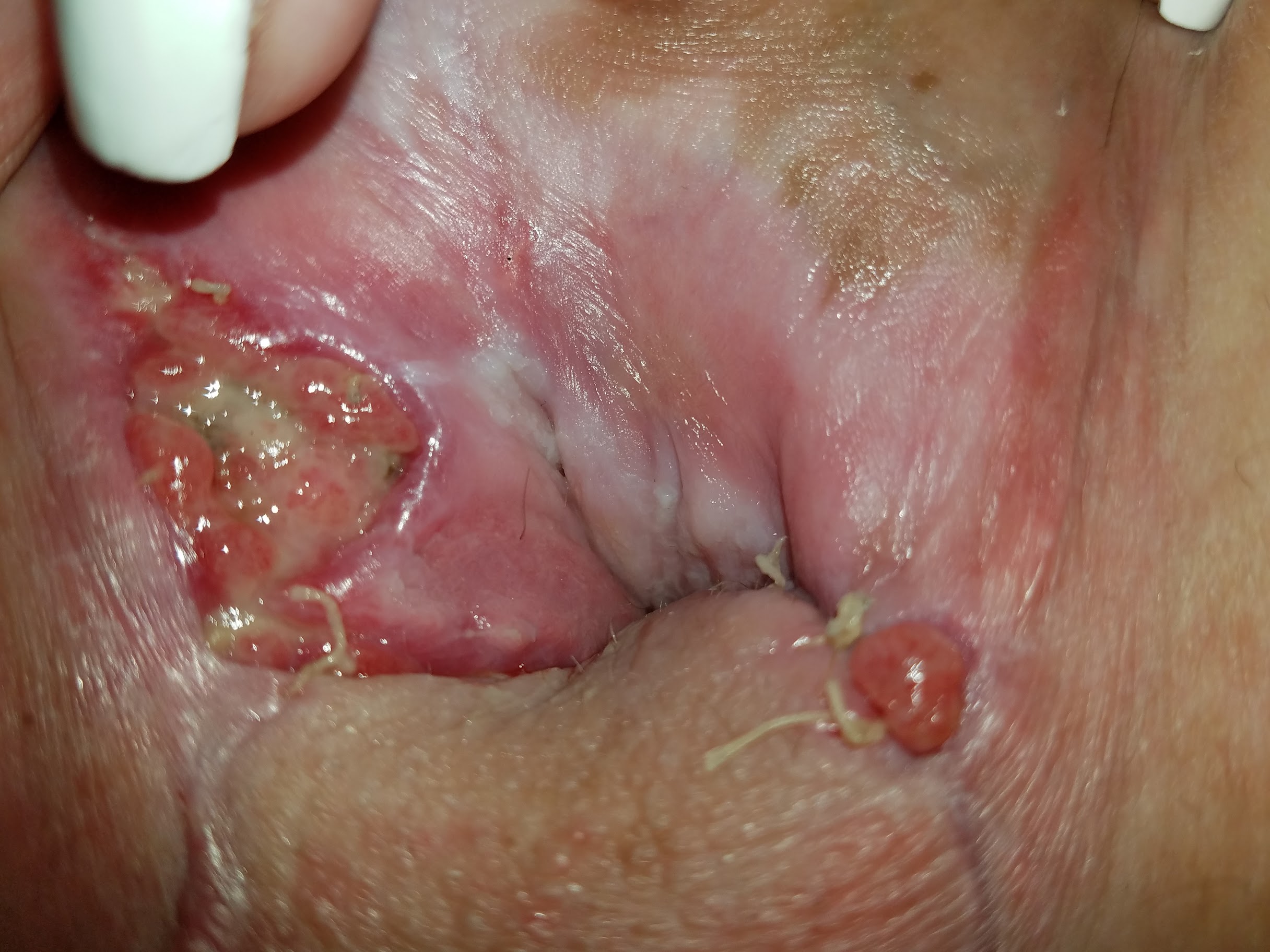 Jesus fucking Christ, I’ve just found one of the most infected, disgusting stink ditches I have ever seen. Apparently it’s wound dehiscence. Interesting that they’d actually call it that considering it’s transphobic to call their neovags open wounds.