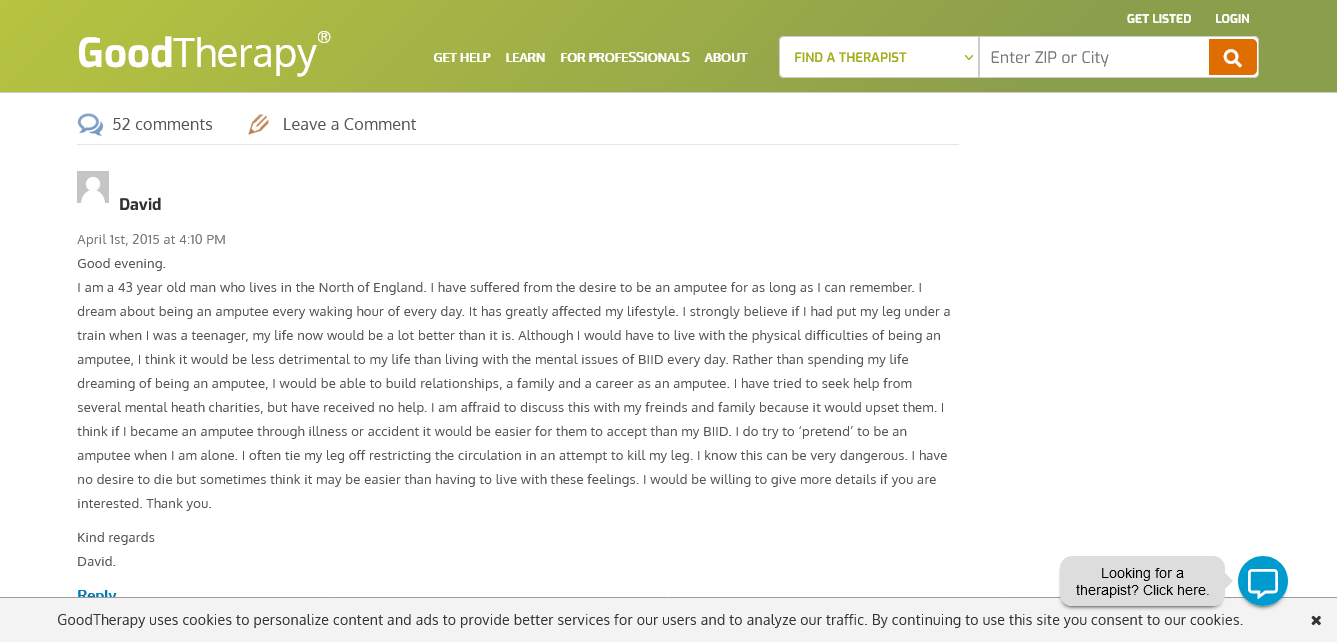 And here is a comment on a different site of just how those with BIID think: