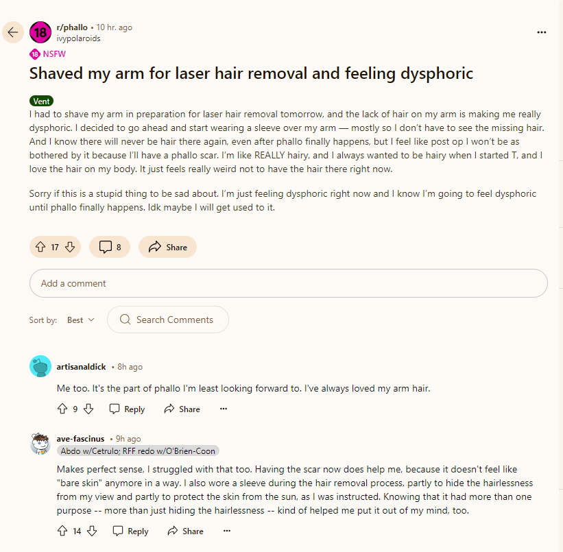 July: nerve damage, poor mental health, needs cane; "phalloplasty made me lose my body all over again when I thought it'd bring me immediate comfort."