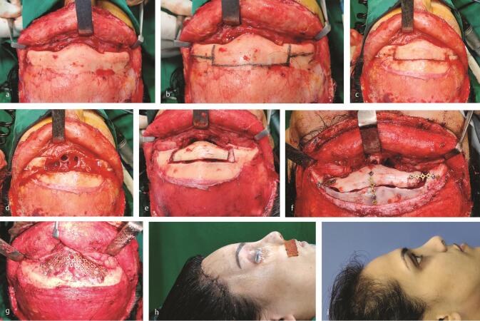 h ) Forehead profile seen intraoperative. (