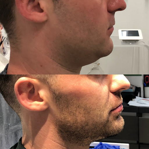 V-line jaw shave. ( a ) Mandible body exposed. ( b ) Pencil marking of osteotomy. ( c ) After mandibular contouring showing preserved mental nerves on either side. ( d–f ) Postoperative CT scans showing reduction in front and side views. CT, ...