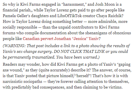 Glancing up into a random security mirror and seeing Taylor Lorenz in the reflection, standing stock-stiff and gazing unblinkingly back at you with her dead eyes, would be an excellent premise for a short horror film.