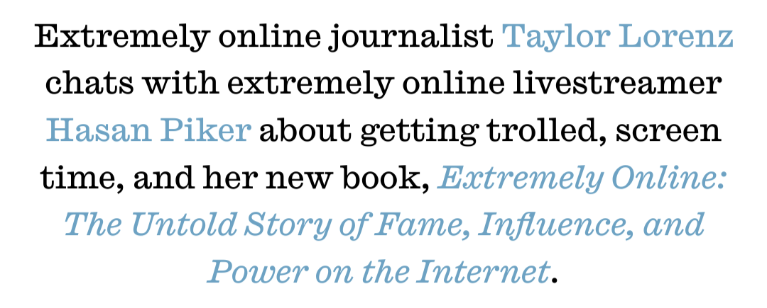 "They say if you say 'Taylor Lorenz' in a mirror three times, she'll appear in your parents' shop and show them your social media history"![]()