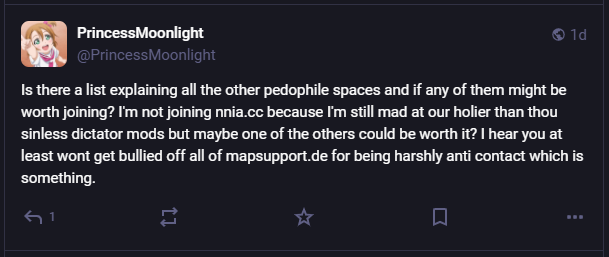 Also proof that paraphile spaces are just hubs to trade content and any claims of community or healing are LIES.