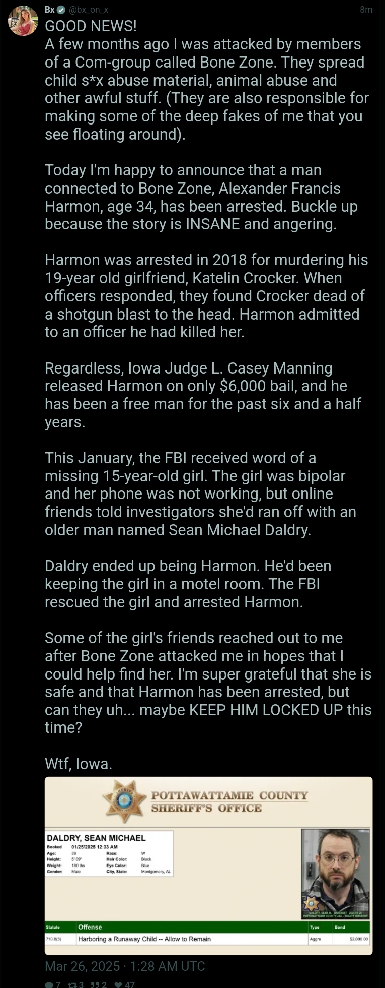 That's fawkin awesome. I did not even know he had gotten arrested. Is this the first time they are announcing that they got him?
