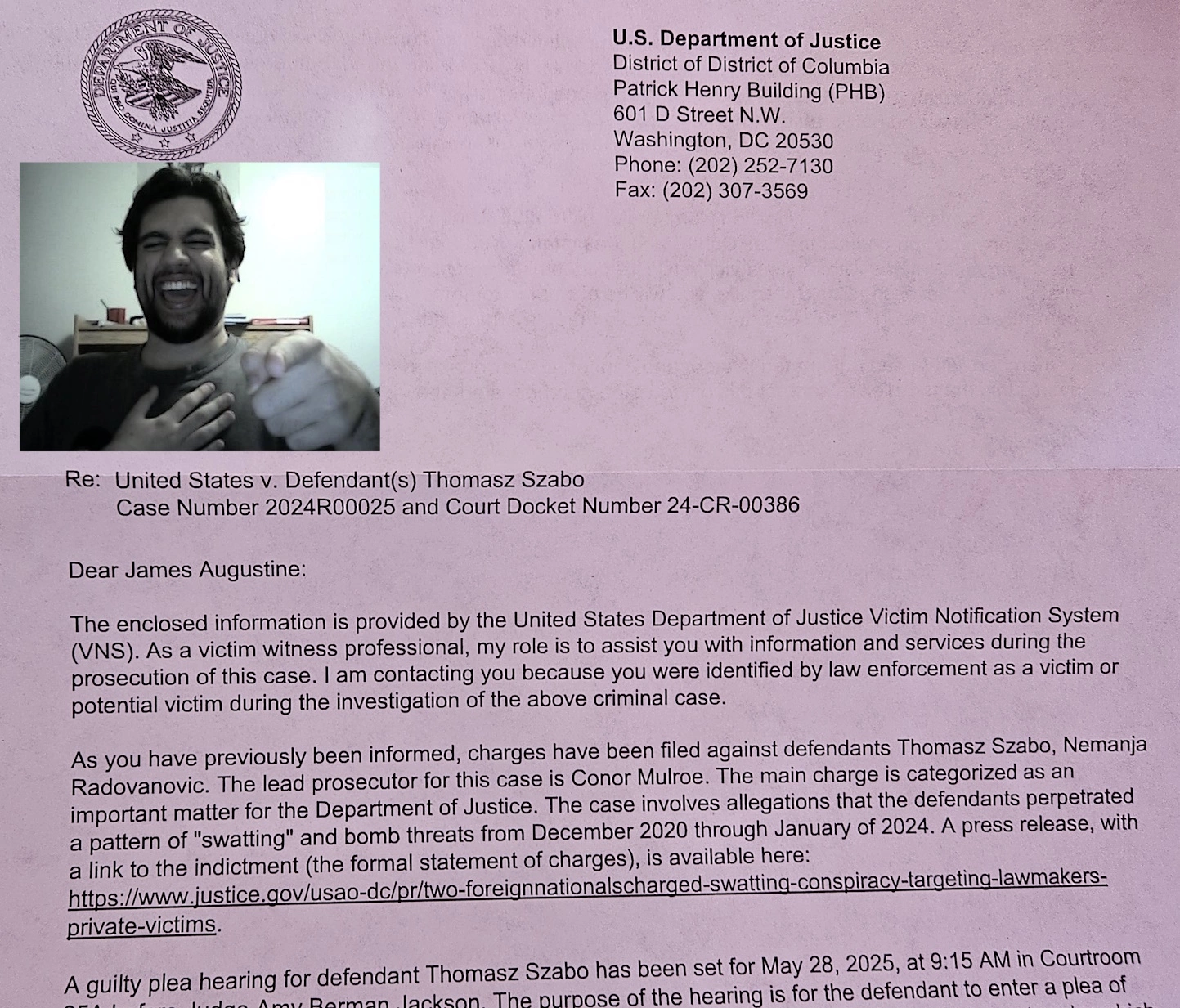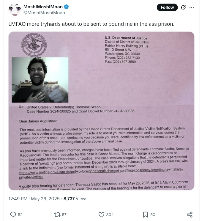 New DOJ victim notification letter fron Metokur, says that Thomasz Szabo (Jonahgoldberg / Meticore) is pleading guilty in two days: