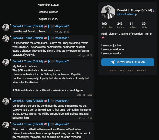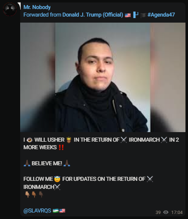 this long, but whatever - the group was heavily involved in posting about America First and YE24 last year, and they also have shown interest in TRS and O9A / Atomwaffen people.