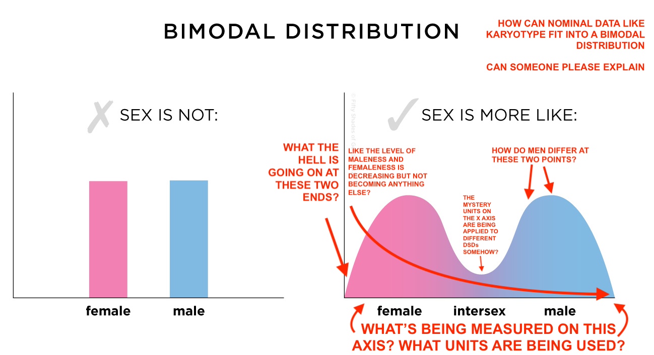 Sex-segregated spaces and sports are also a social construct. If troons are women, there's no need for that segregation, we should instead segregated on some sort of observable variance in risk level and performance between sub populations of humans, some sort of broad, possibly bimodal distribution of variables that all humans fall into. It's a shame we don't have a (social constructed) word for that (anymore).