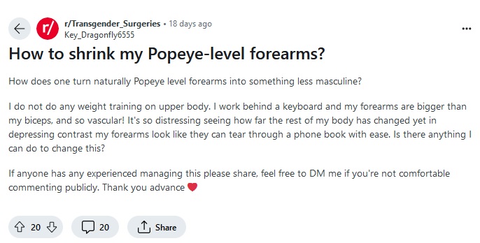 Probably so that he use the mastectomy scars and say "Look, I WAS a woman originally"....which is handy if he doesn't pass either way.I've fucking seen it all now.