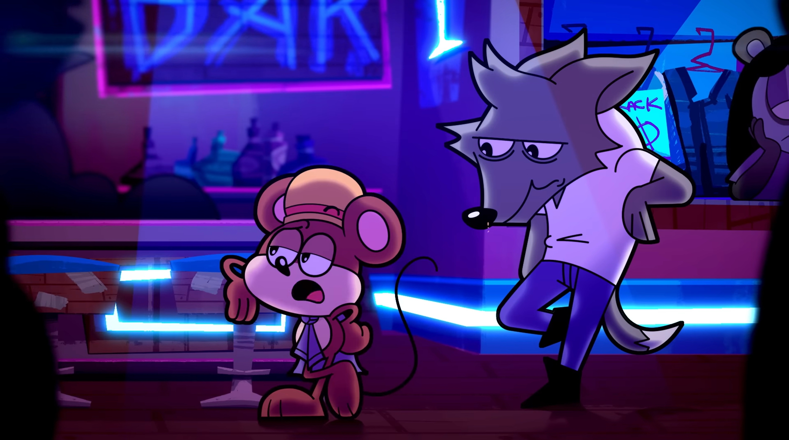 I'm a tourist and not going to watch it or even read the thread but I was taken aback at how bad these character designs are in the thumbnail/poster. Neither character has eyebrows or shaped eyes to indicate what they're feeling, but they both have some incidental detail that makes it look like they do: the dog(?)'s weird hairline takes the place of eyebrows and makes him look angry, and the shadow from the mouse's hat makes him look angry or fired up when I'm pretty sure that's not the intention in either case.