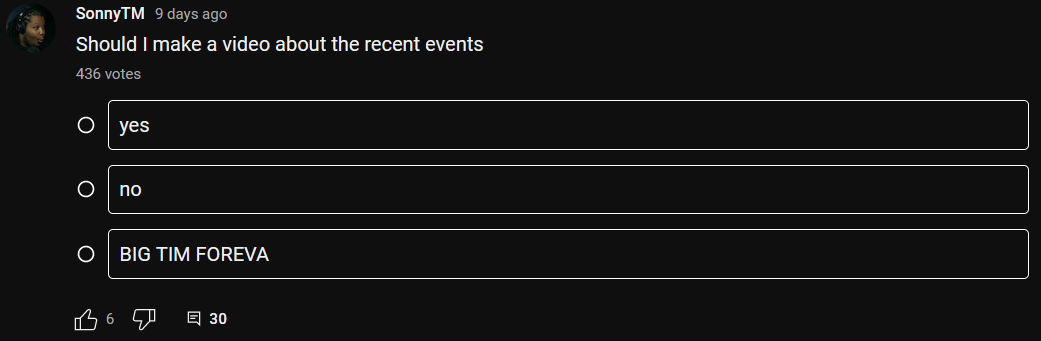 It is actually better that he doesn't because it is too different from his regular content.Damn they beatin this mf's ass in the comments man he needa fight back